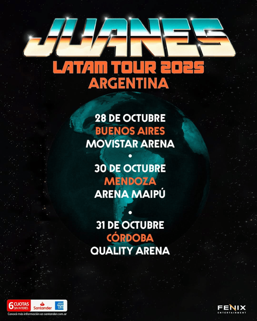 El aclamado cantante colombiano Juanes ha confirmado su esperado regreso a Argentina como parte de su gira 2025. Tras deslumbrar en la Fiesta Nacional de la Confluencia, el artista volverá en octubre para presentarse en Buenos Aires, Mendoza y Córdoba, con un show que promete repasar sus mayores éxitos y lo más reciente de su discografía.