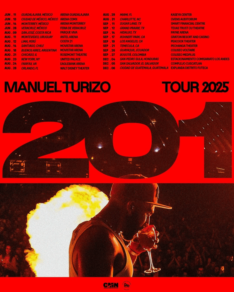 Manuel Turizo anunció el pasado 7 de abril de 2025 su “201 Tour”, una gira internacional que llevará su energía caribeña a más de 25 ciudades de Latinoamérica y Estados Unidos, con fechas europeas aún por revelar.