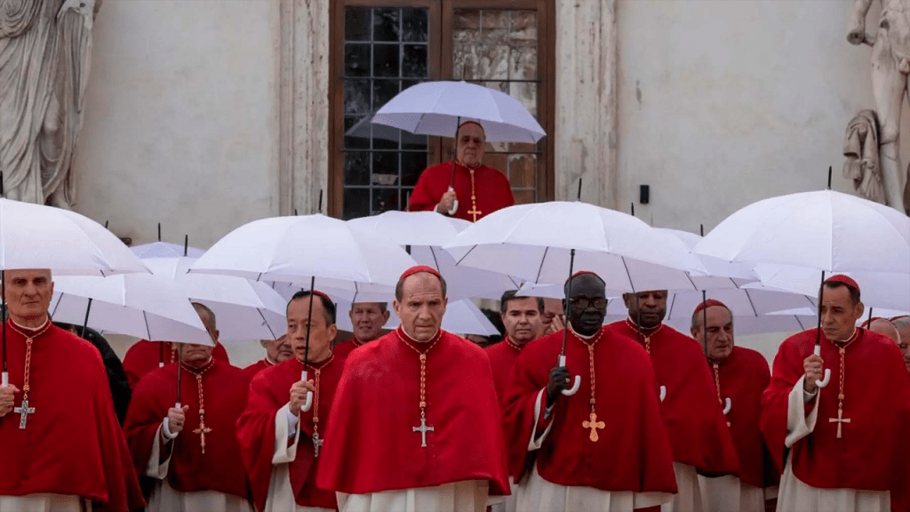La película, basada en la novela de Robert Harris, sigue al cardenal Thomas Lawrence (Ralph Fiennes) mientras navega conflictos entre facciones progresistas y conservadoras. Con actuaciones destacadas de Stanley Tucci, John Lithgow y Carlos Diehz, la cinta refleja los dilemas de la Iglesia Católica frente a la modernidad.