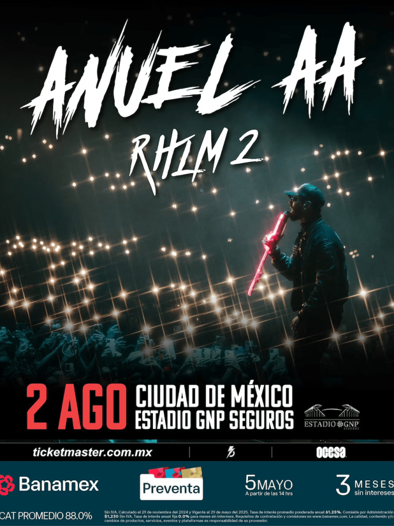 Anuel AA, ícono del trap latino, presentará el concierto más grande de su carrera en México el 2 de agosto de 2025 en el Estadio GNP Seguros de Ciudad de México, según confirmó OCESA. Este show es parte de su gira RHL2: Real Hasta La Muerte 2.