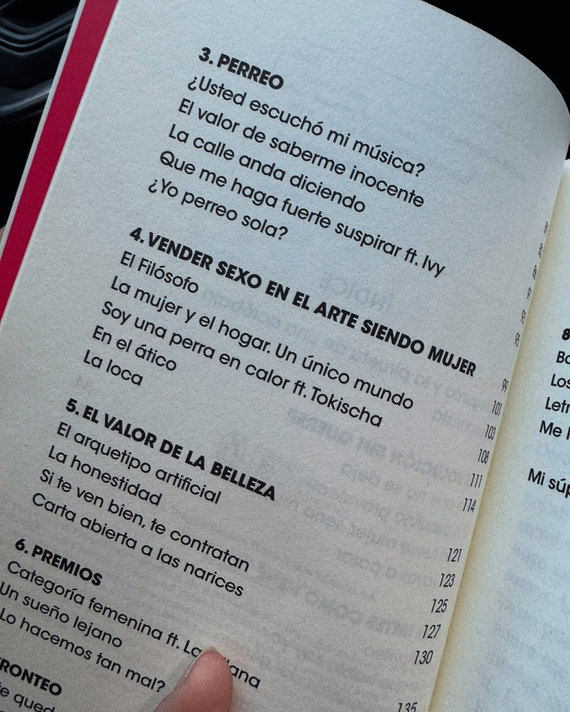 “Este libro cuenta, reivindica y niega la industria de la música urbana específicamente, sobre la vida de una mujer en la música o en cualquier campo”, escribió en Instagram, dedicando la obra a mujeres que aman o critican el género, a artistas como Villano Antillano y Tokischa, y a colegas masculinos que la inspiraron.