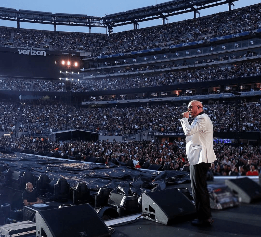 La velada comenzó con Pitbull, quien abrió el concierto con un set explosivo que incluyó Hotel Room Service, un cover de Gasolina de Daddy Yankee y riffs inspirados en Seven Nation Army.