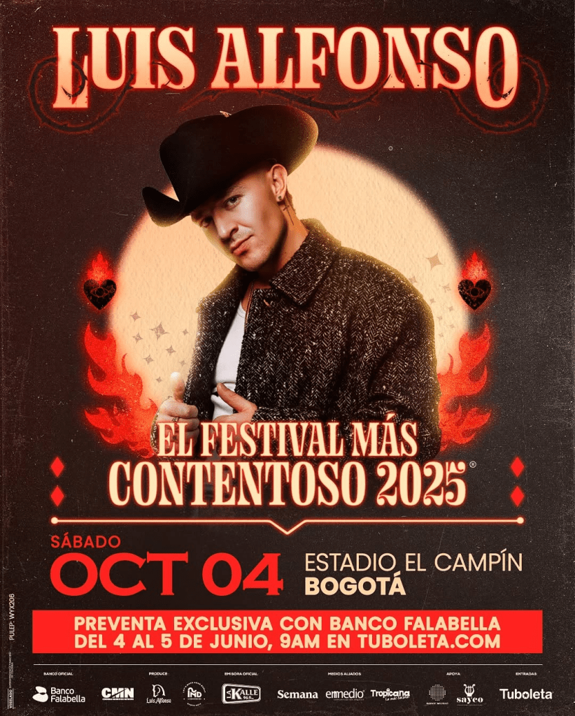 Luis Alfonso, reconocido por su paso en ‘A Otro Nivel’ de Caracol Televisión, ha compartido escenario con artistas como Ana Gabriel y Jessi Uribe. Su álbum ‘Contentoso’ de 2024, con más de 200 millones de reproducciones, lo consolidó como referente del género.