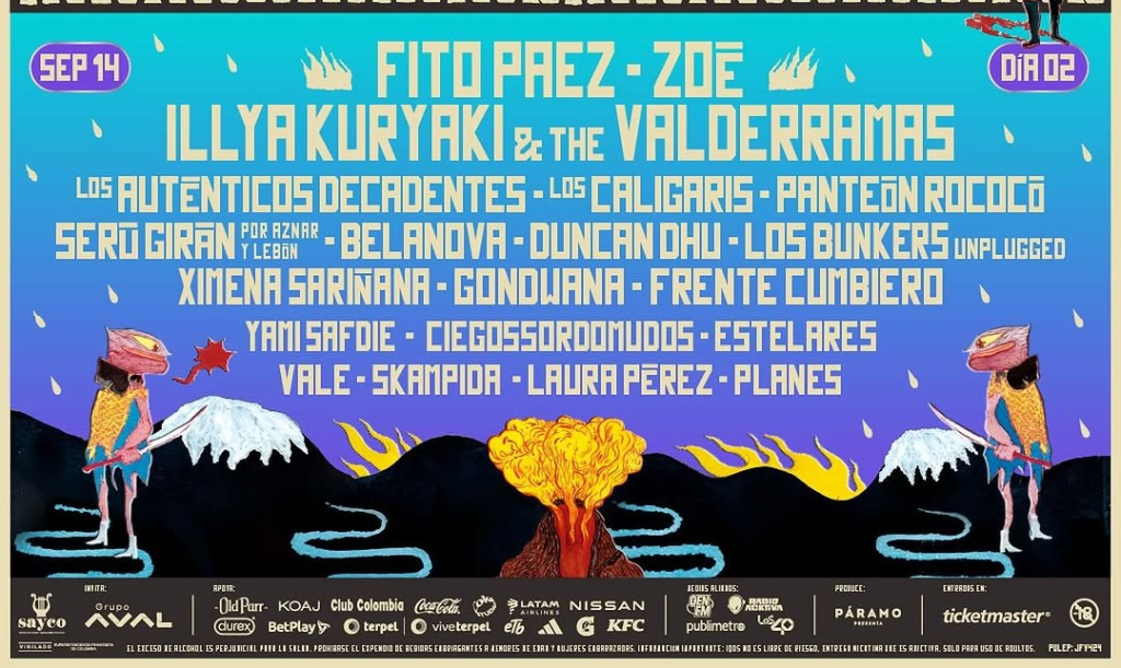 El domingo 14 de septiembre, Fito Páez saldará su deuda con Bogotá tras cancelar su show en 2024 por una lesión. Su presentación, cargada de himnos como Mariposa Tecknicolor, será un momento cumbre. “Fito Páez llega con su piano, su rumba y su historia”, celebró la organización. Zoé y Los Auténticos Decadentes liderarán una jornada rockera, acompañados por Illya Kuryaki & The Valderramas y Panteón Rococó.