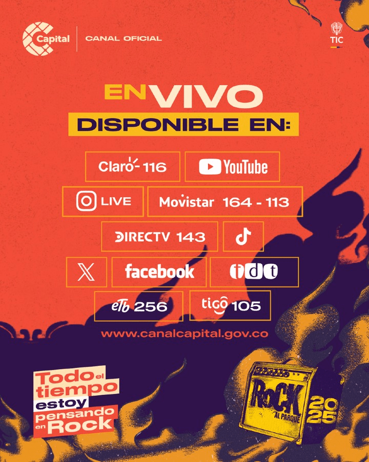 Rock al Parque 2025 encenderá Bogotá del 21 al 23 de junio con 56 bandas en el Parque Simón Bolívar. La edición 29 del festival gratuito será transmitida en vivo por Canal Capital, llevando el rock a millones en Colombia y el mundo desde cualquier pantalla.