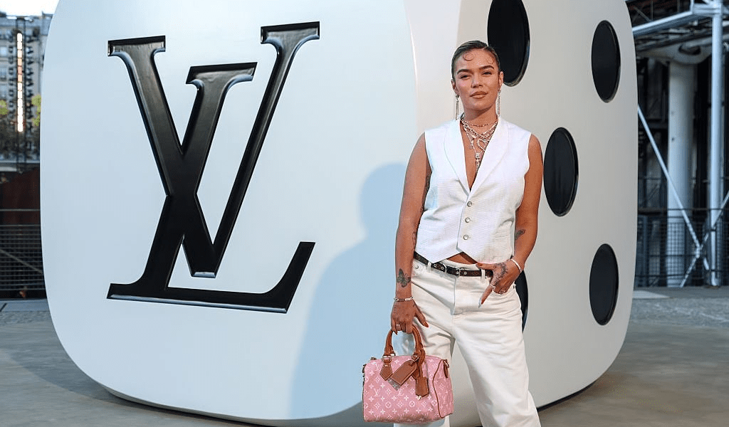 La Bichota lució un chaleco sastre blanco sin mangas, de corte masculino, combinado con pantalones baggy y un cinturón marrón. Su bolso Speedy P9 Bandoulière 40 rosa caramelo, valorado en $11.400, acaparó miradas. “Combinó su atuendo con botas blancas vaqueras y un peinado elegante con un rizo frontal”, destacó People en Español.