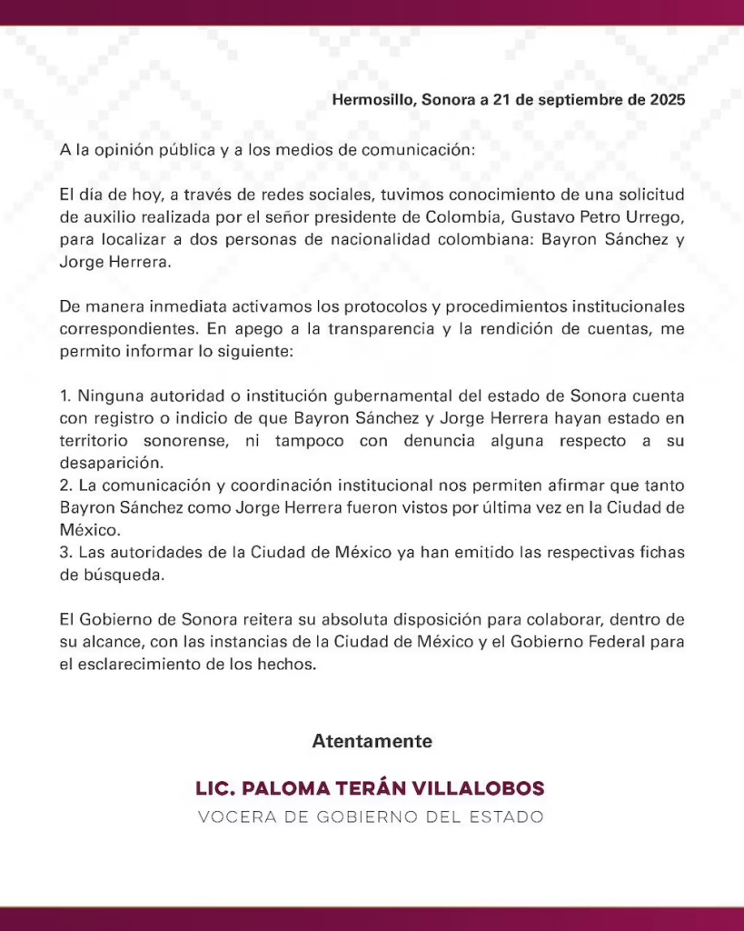 Ambos músicos habían viajado a México para cumplir compromisos artísticos durante las celebraciones de la independencia. La última vez que se les vio con vida fue en la colonia Polanco, Ciudad de México, cuando salían de un gimnasio el 16 de septiembre. Desde entonces, sus familias perdieron contacto y denunciaron la desaparición.