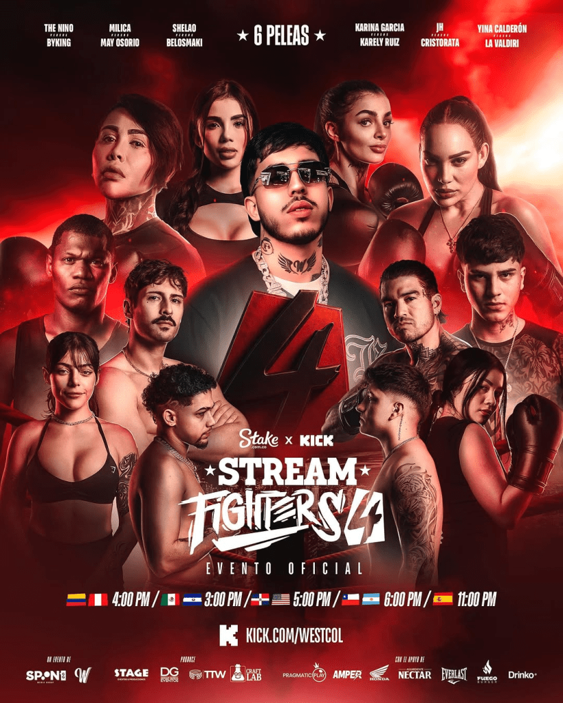 El Stream Fighters 4 reunirá a reconocidos creadores de contenido de distintos países de Latinoamérica. Entre ellos estarán Shelao (Chile), By King (Chile), The Nino (República Dominicana), Milica (Argentina) y May Osorio (Colombia), además de las populares Karely y Karina, que se medirán en uno de los combates femeninos más esperados del año.